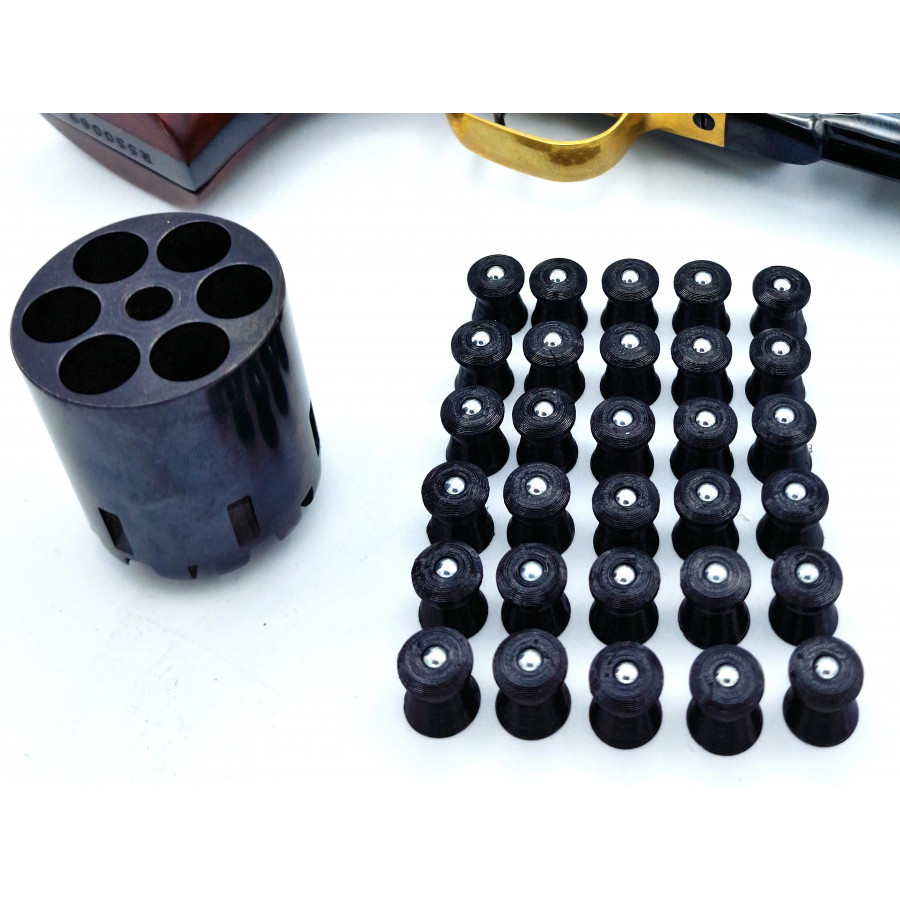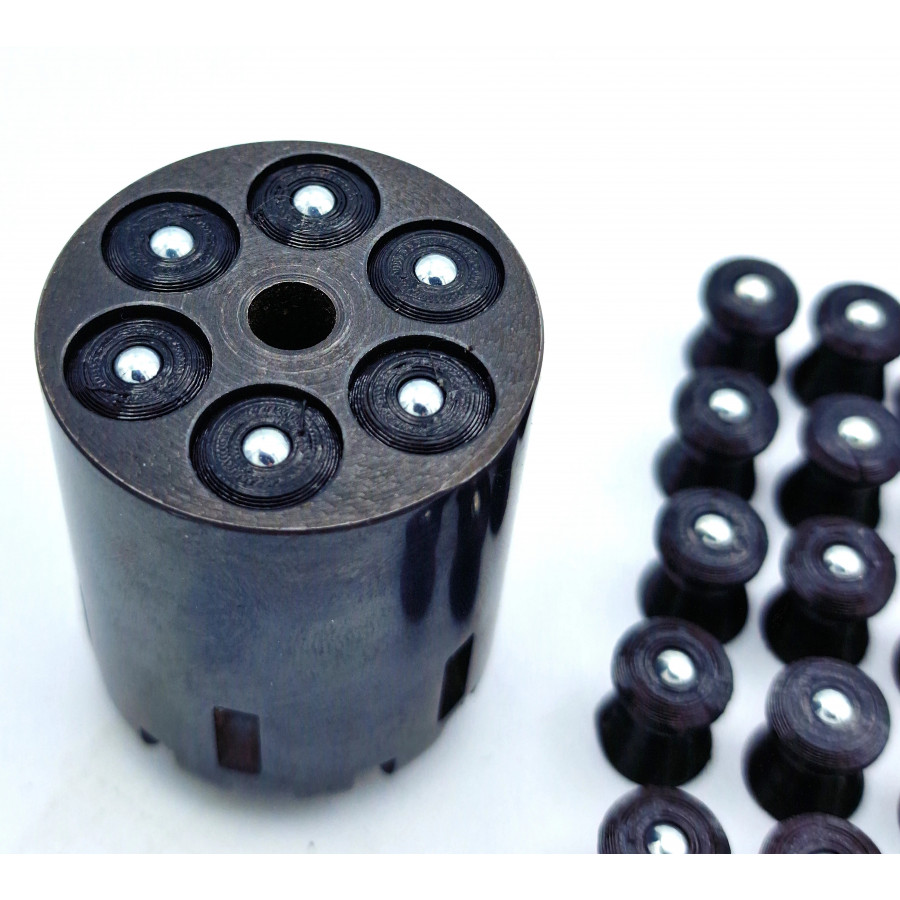 Ces ogives s'insèrent sans avoir à démonter le barillet et s'enclenchent avec le levier d'armement.