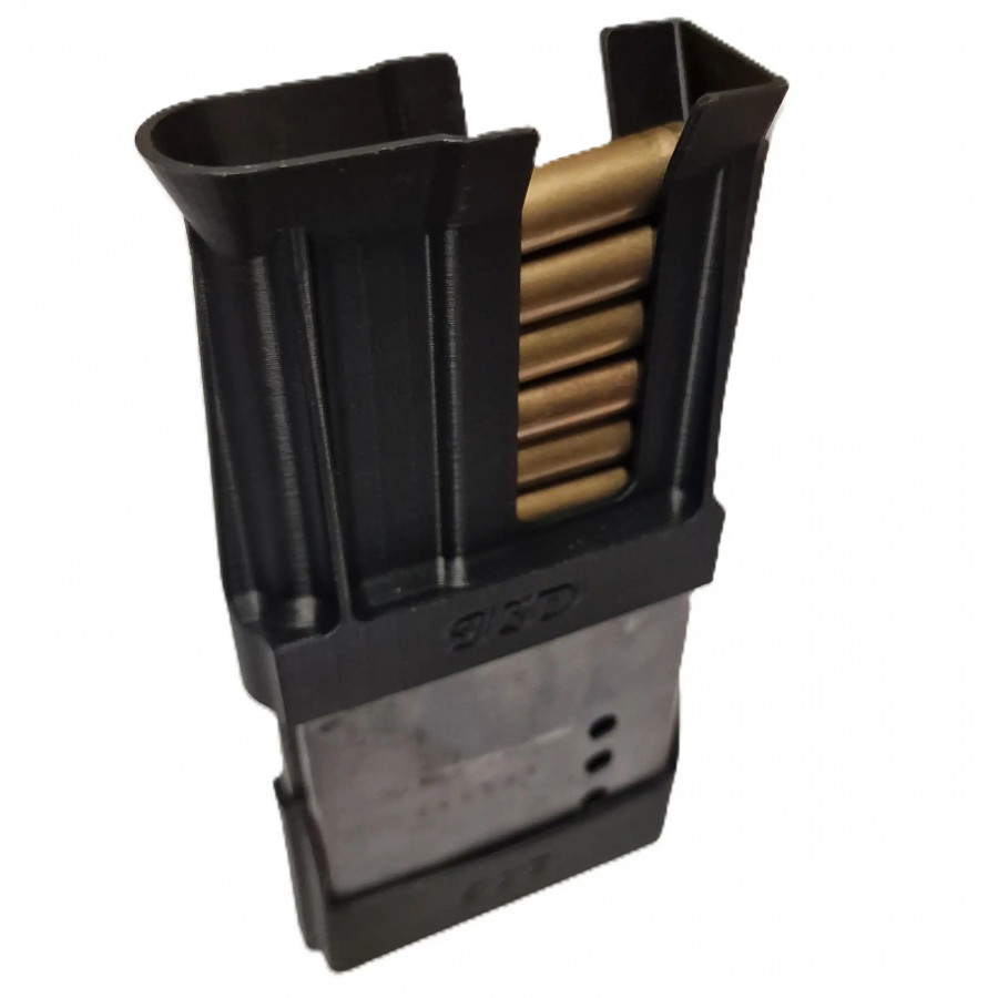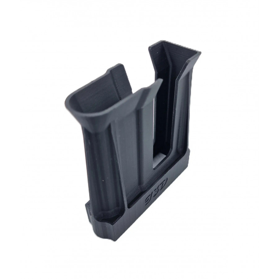 Grace à sa conception, ce sabot de chargeur possède un fond incurvé permettant alors de poser le chargeur debout et de le garder à proximité de l'arme lors de séance de tir. Une évacuation à l'arrière a été positionnés vers le bas du sabot afin de faciliter l'évacuation de l'humidité.