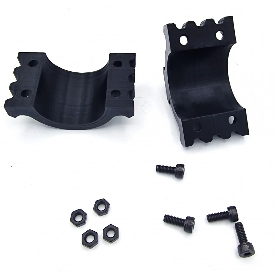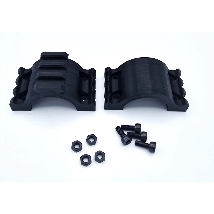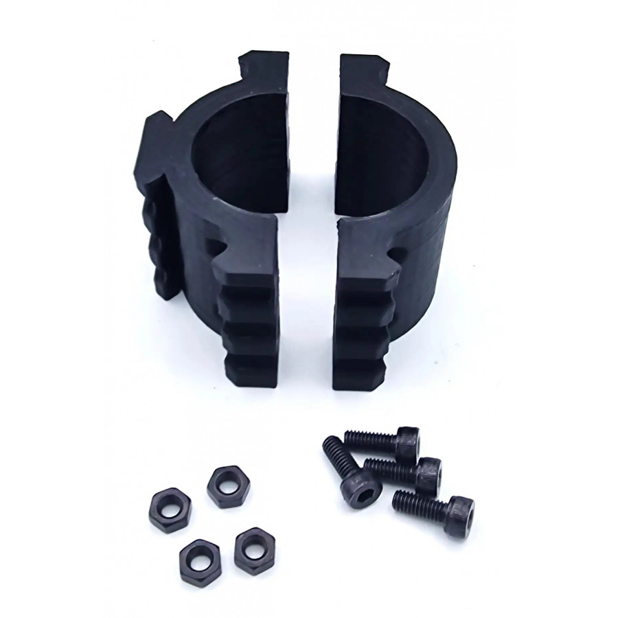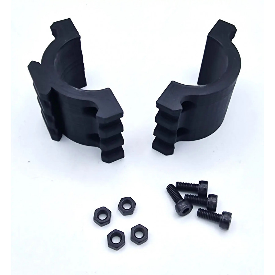 Une fois glissé autour du cylindre d'air, l'adaptateur coulisse librement le long de celui-ci afin de déterminer son emplacement idéal. Il est ensuite fixé durablement grâce à un ensemble de deux vis BTR-écrou qui une fois serré assure un maintien optimal sans aucun jeu.