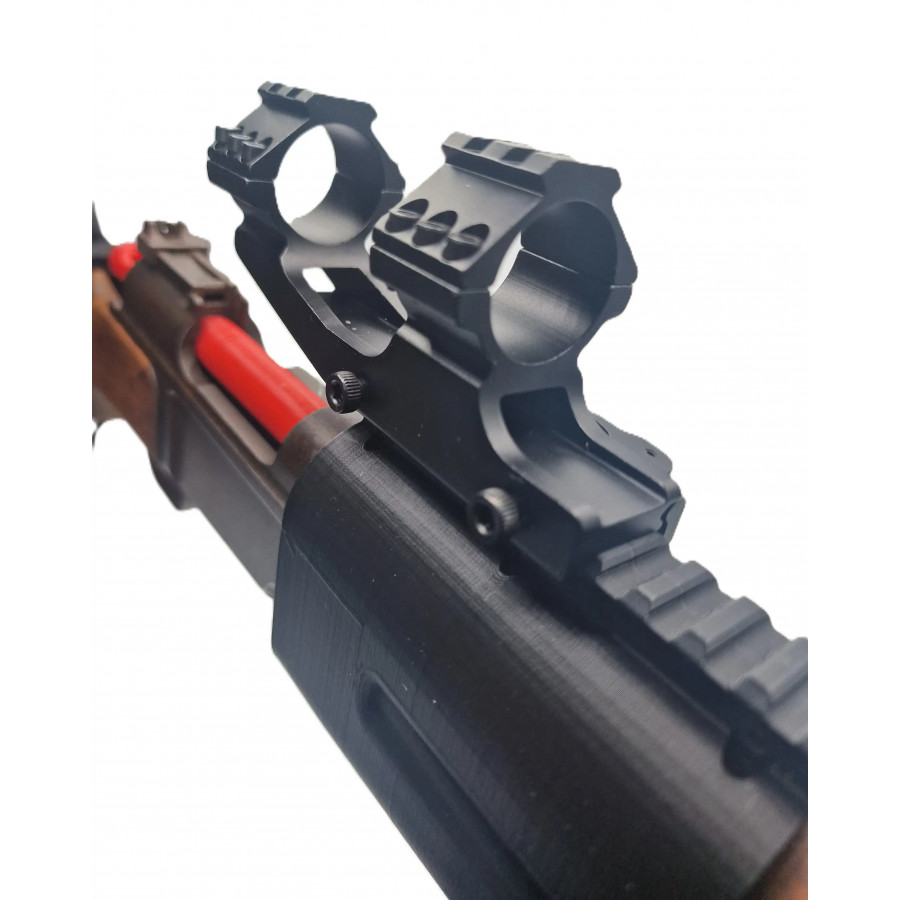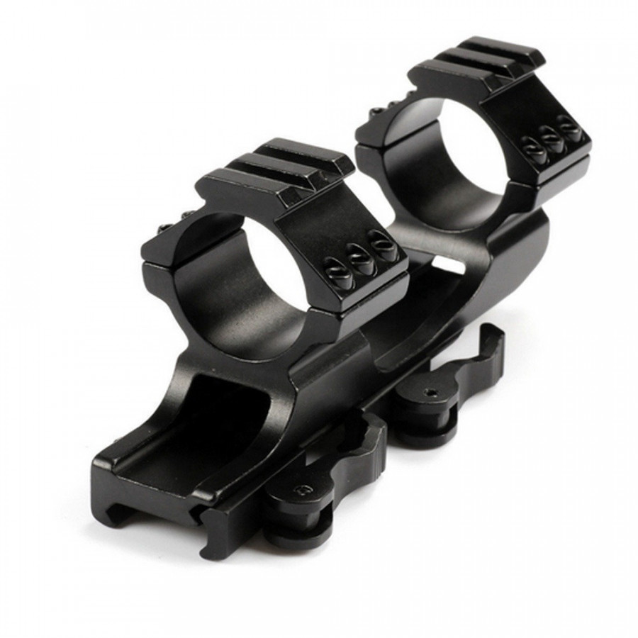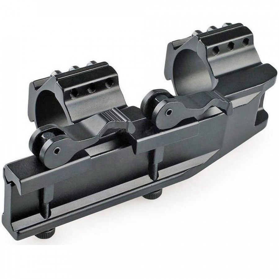 Il permet la fixation de lunette avec un tube de 30mm ou 25,4mm avec les adaptateurs fournit sur une embase picatinny 20mm