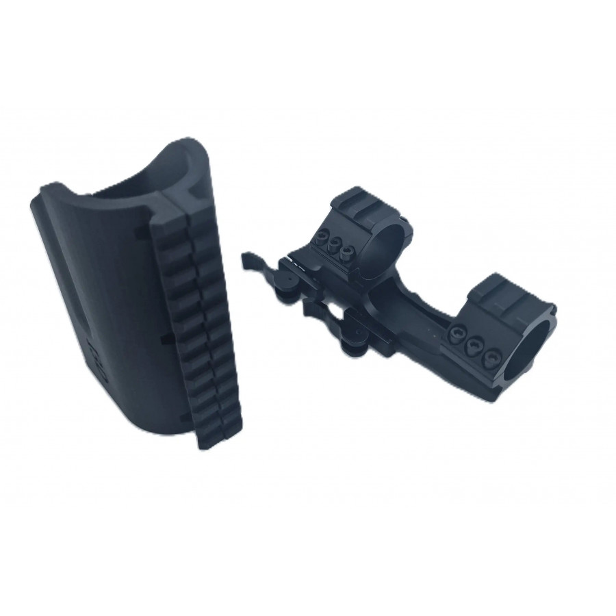 Cet adaptateur permet la fixation d'une lunette, d'un point rouge, d'un laser, d'une lampe torche ou de tout autres accessoires se fixant sur un rail picatinny/weaver 20-22 mm.