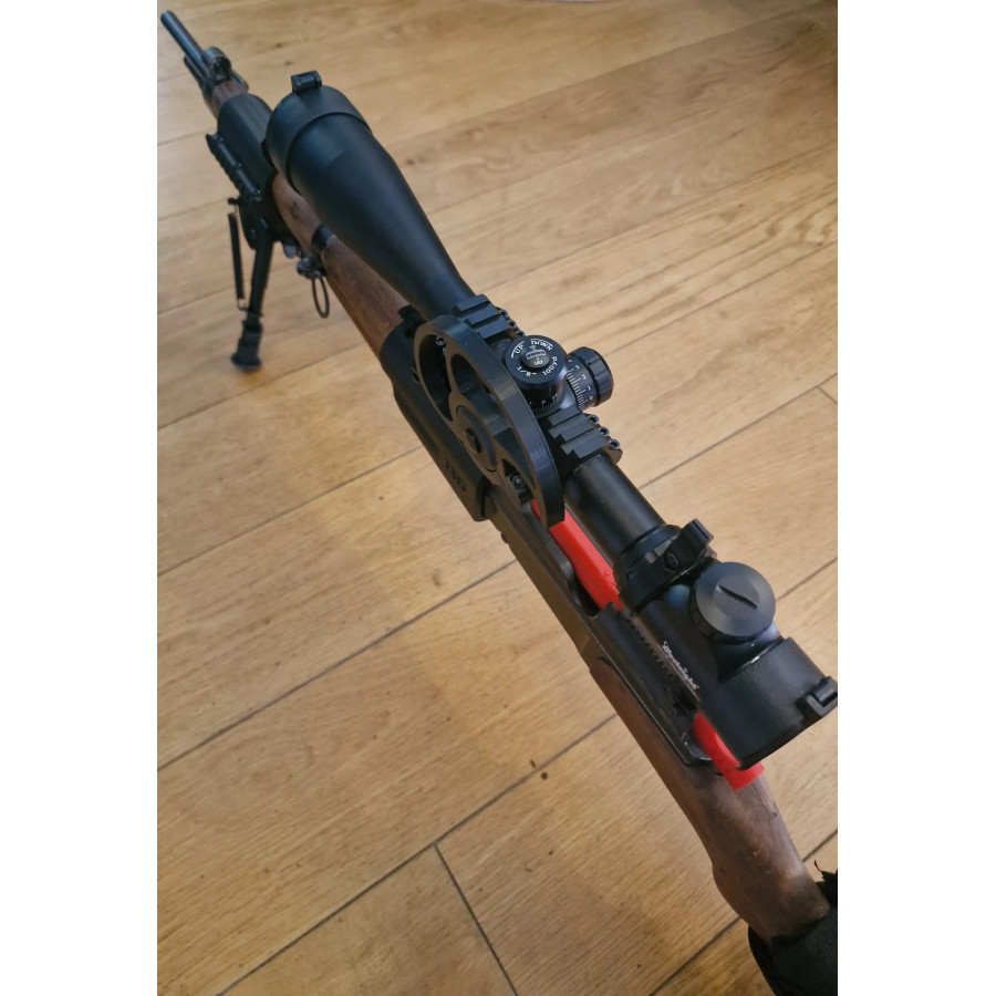 En fonction de lunette utilisé et de sa position, l'utilisation de lame chargeur peut s'avérer délicate et l'éjection des cartouches doit se faire avec douceur. (Préférez une lunette scout compact pour l'utilisation de lames chargeurs)
