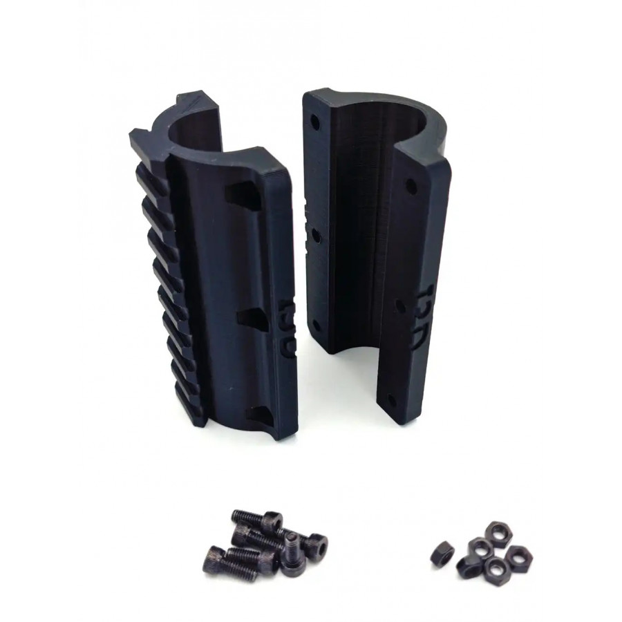 Cet adaptateur est constitué de deux coques se fixant l'une à l'autre à l'aide de 6 couples Vis BTR / Ecrou (fournis), sans aucun besoin de démonter l'arme.
