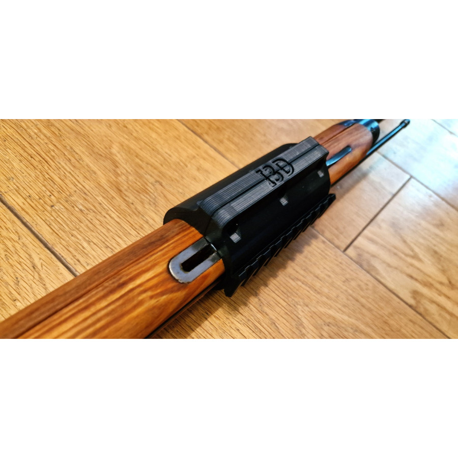 Adaptateur comportant un rails picatinny 20 mm de 9 emplacements se fixant à l'avant de l'arme pour fusil Mosin Nagant.
