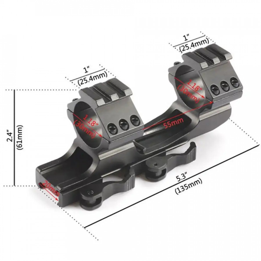 - Rail picatinny déporté pour fixation de lunette ou point rouge