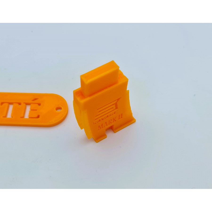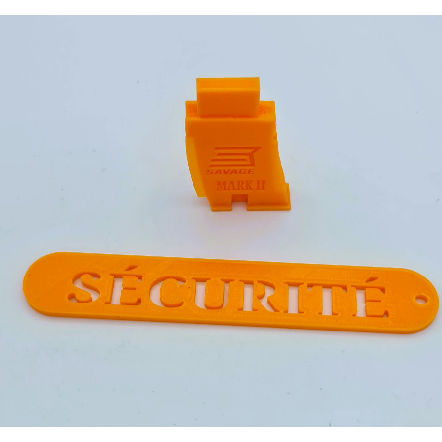 Chargeur de sécurité ergonomique pour carabine Savage Mark II et Stevens 22LR (Mag Flag) avec étiquette sécurité et passage lunette