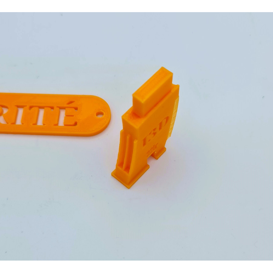 Ce chargeur de sécurité et le drapeau sont en polymères d'acide polylactique (PLA) haute densité et haute résistance, aussi connu sous le nom de bioplastique car issu de sources renouvelables et totalement biodégradables. Avec un remplissage de 60% en croisillons décalés, sa résistance et sa durabilité sont assurées.