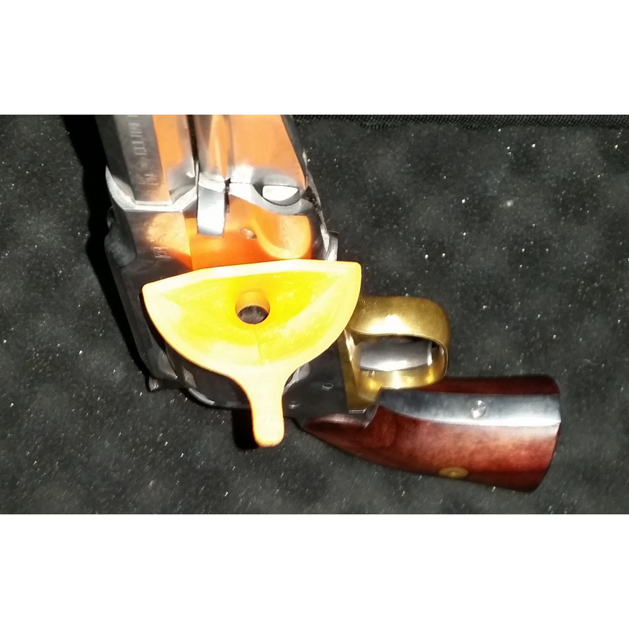 Entonnoir venant s'enclencher directement dans une chambre du barillet afin de faciliter le chargement de la poudre noire sans avoir à démonter le barillet.