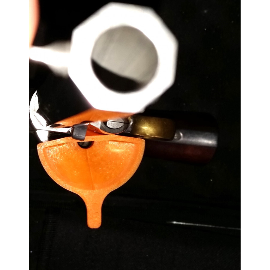 Entonnoir venant s'enclencher directement dans une chambre du barillet afin de faciliter le chargement de la poudre noire sans avoir à démonter le barillet.