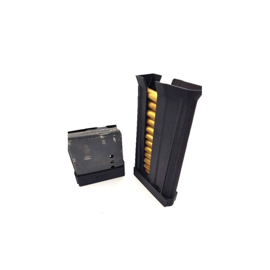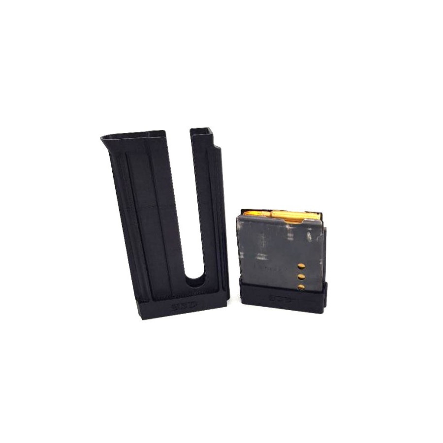 Grace à sa conception, ce sabot de chargeur possède un fond incurvé permettant alors de poser le chargeur debout et de le garder à proximité de l'arme lors de séance de tir. Une évacuation à l'arrière a été positionnés vers le bas du sabot afin de faciliter l'évacuation de l'humidité.