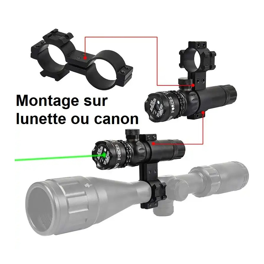 - Montage sur lunette ou canon (diamètre 25mm)