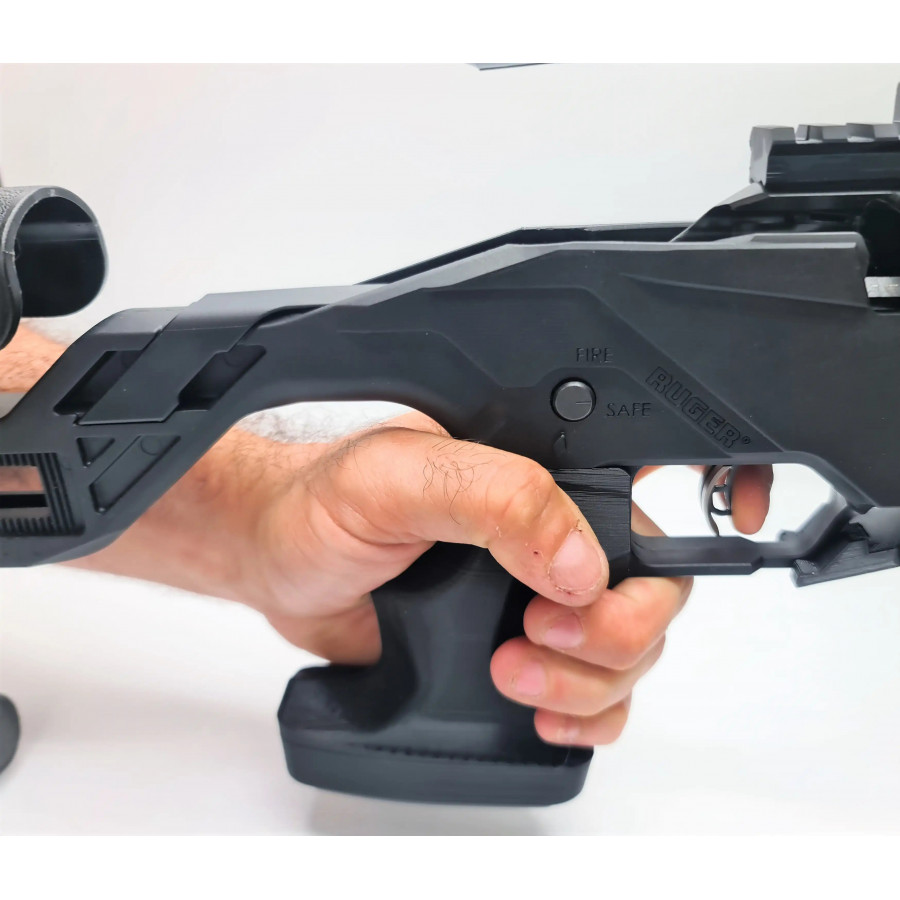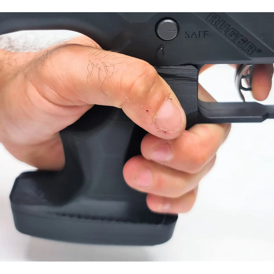 Car même si j'ai des "grosses paluches" (je tenais mon Desert Eagle 50 AE d'une seule main), j'adore cette poignée sur ma Ruger Rimfire 22lr, je suis à mon aise car main bien calée ...
