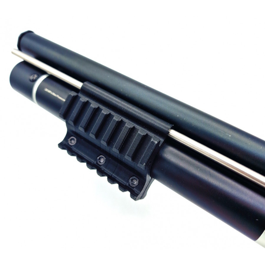 - Rail picatinny sous et sur les côtés du cylindre d'air