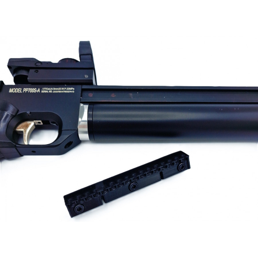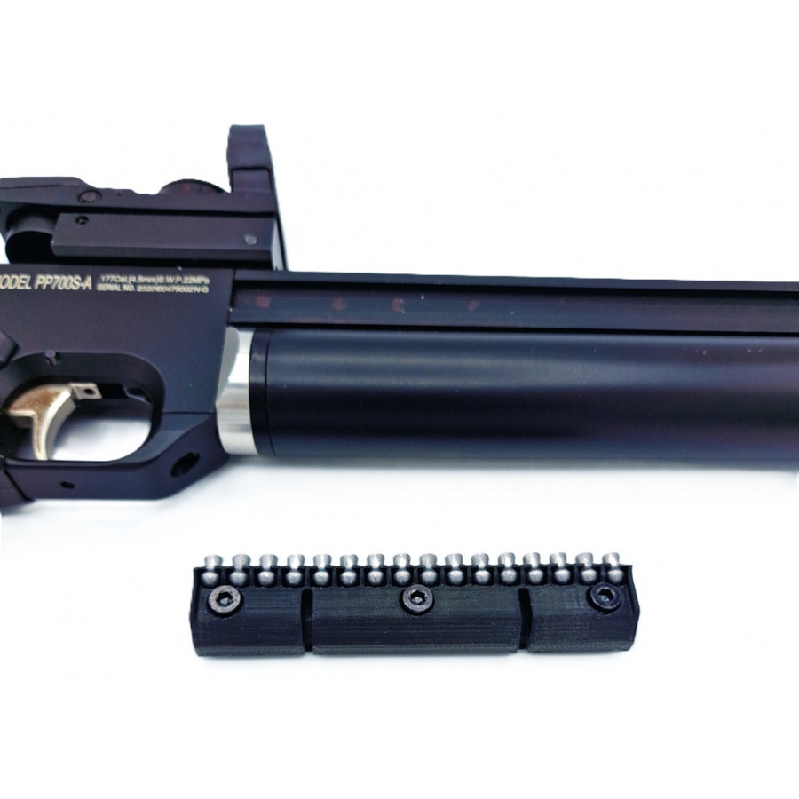 De par sa masse très légère de 18gr et sa facilité de placement tout le long du canon, cet adaptateur ne gêne en rien la prise en main de l'arme.