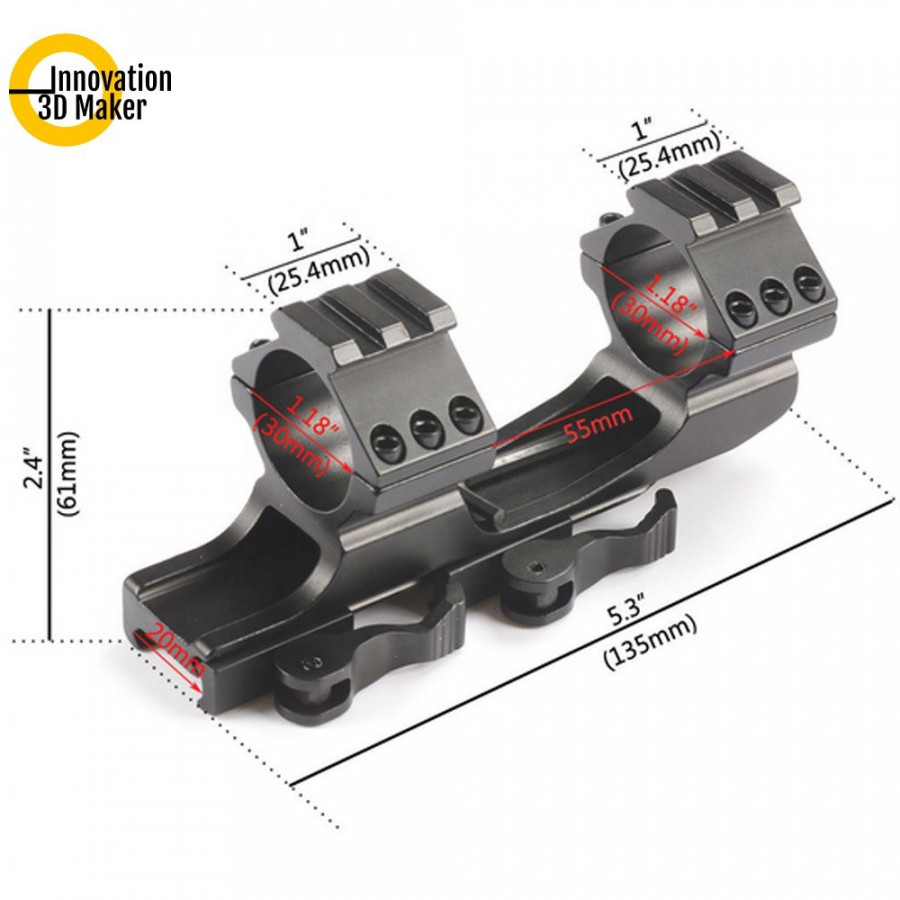 Il permet la fixation de lunette avec un tube de 30mm ou 25,4mm avec les adaptateurs fournis sur une embase picatinny 20mm