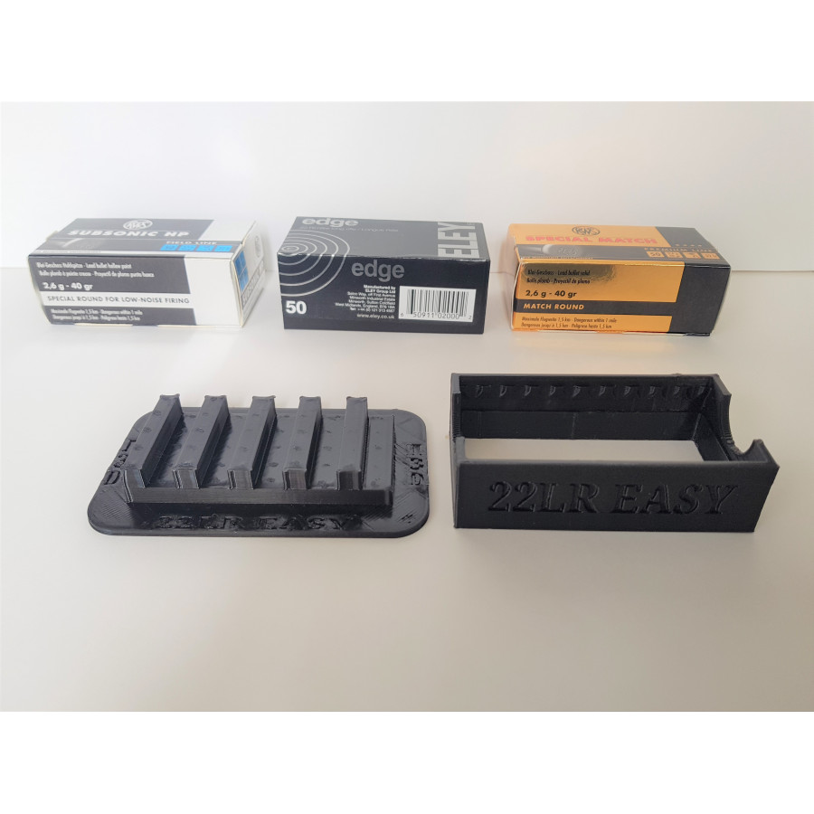 Ce système convient aux deux types de boites de cartouches 22LR les plus courantes, celles avec des pieds de support (type RWS, CCI etc..) mais également celle sans aucun pieds de support (type Eley).