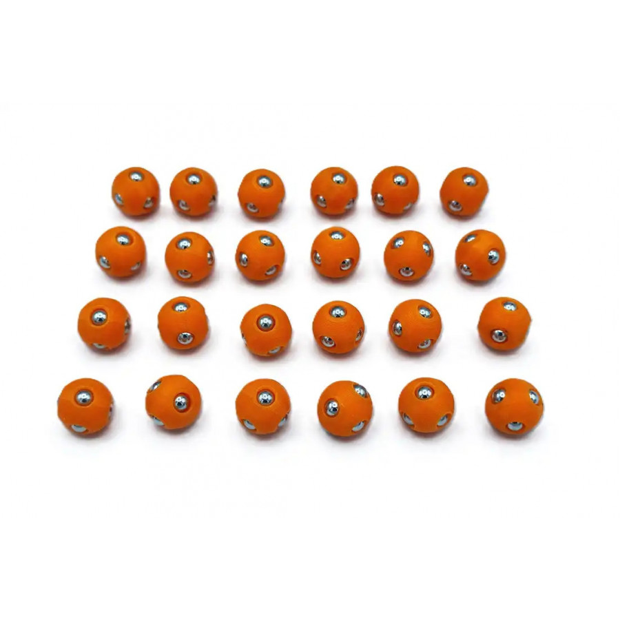 - Ogive dure en plastique très solide, agrémentée de 6 billes d'acier indéformables, une sur chaque face.